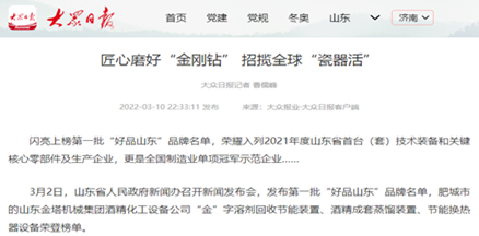 歷經多年的拼搏創新,金塔已經成為規模化、成套化、技術化及節能化的酒精生產及廢液處理裝備專業制造商,是《酒精蒸餾塔》 《糠醛水解鍋》《糠醛蒸餾塔》等國家行業標準的制定者。以“金”字為商標的酒精生產及其節能環保設備是國內客戶尤其是知名大型酒業公司信賴的品牌,與中國酒業的龍頭企業 五糧液集團三次合作,深得好評和信賴,與天冠集團、阜豐集團、吉良集團等大型燃料乙醇巨頭攜手,推動了燃料乙醇技術裝備的進步,向國內28個省市區近2000家客戶提供了產品和技術服務,建立了深厚的合作基礎,并出口東南亞、東歐、非洲、南美等多個國家。